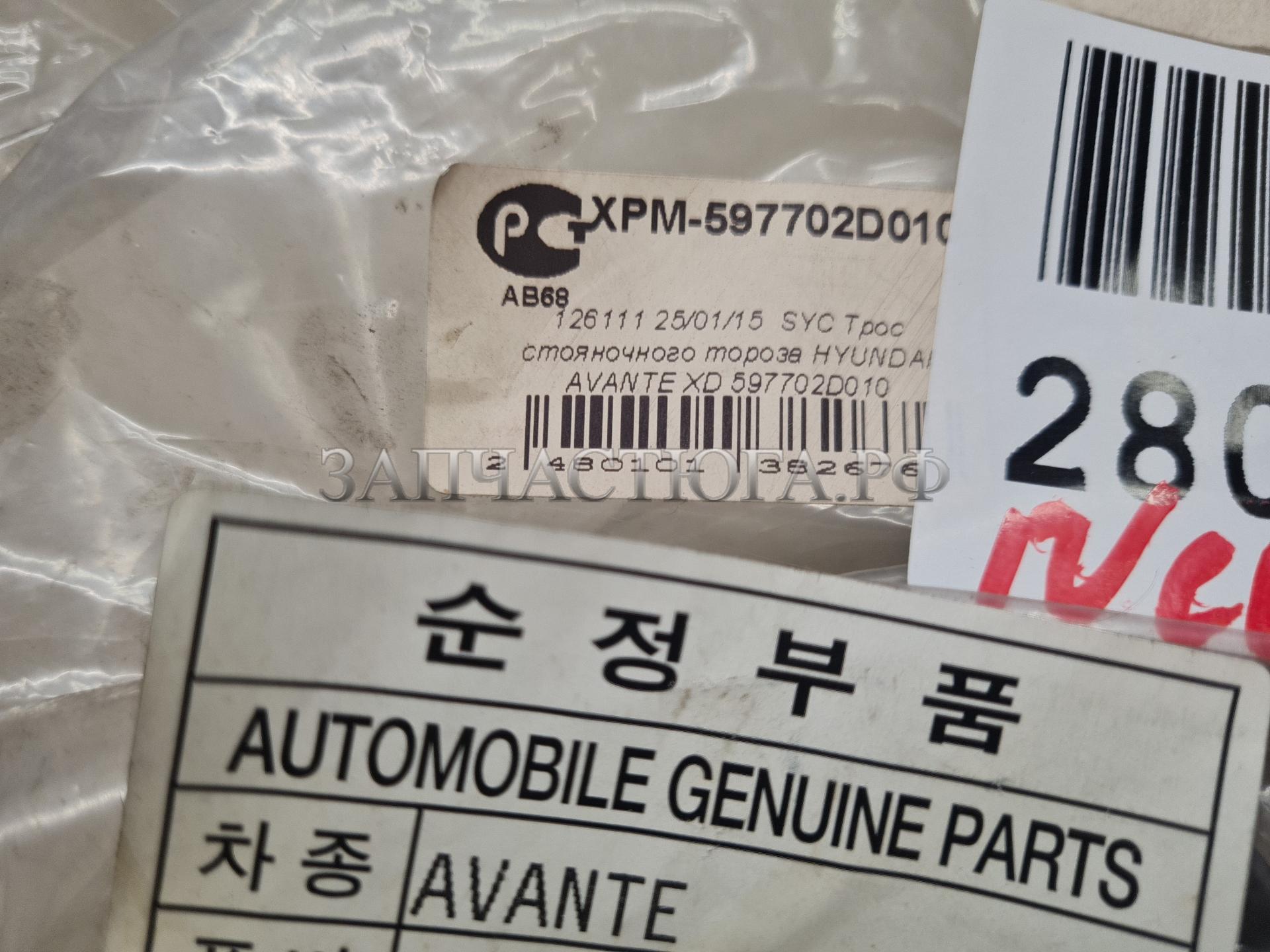 Трос стояночного тормоза правый для Hyundai Elantra XD 2000-2010