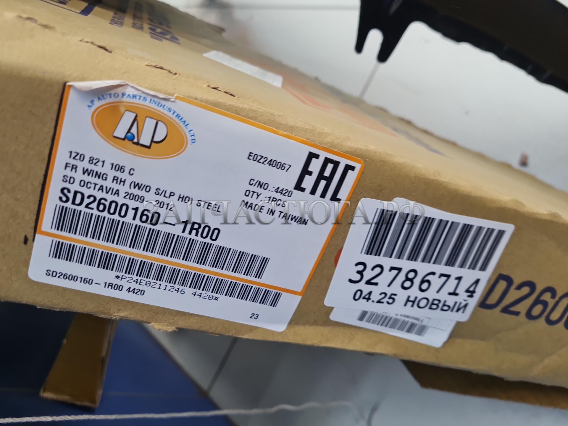 Крыло переднее правое для Skoda Octavia A5 1Z 2004-2013
