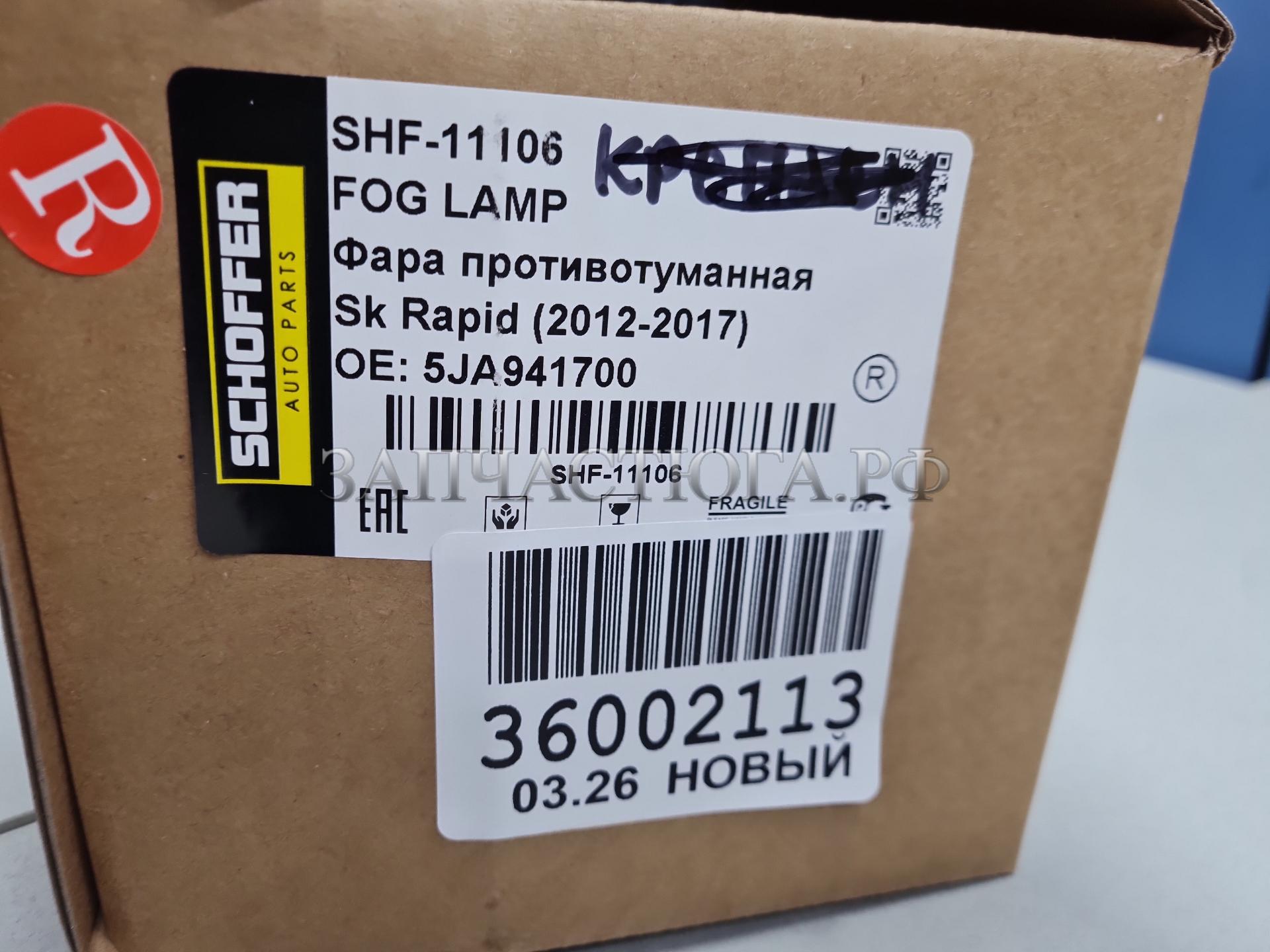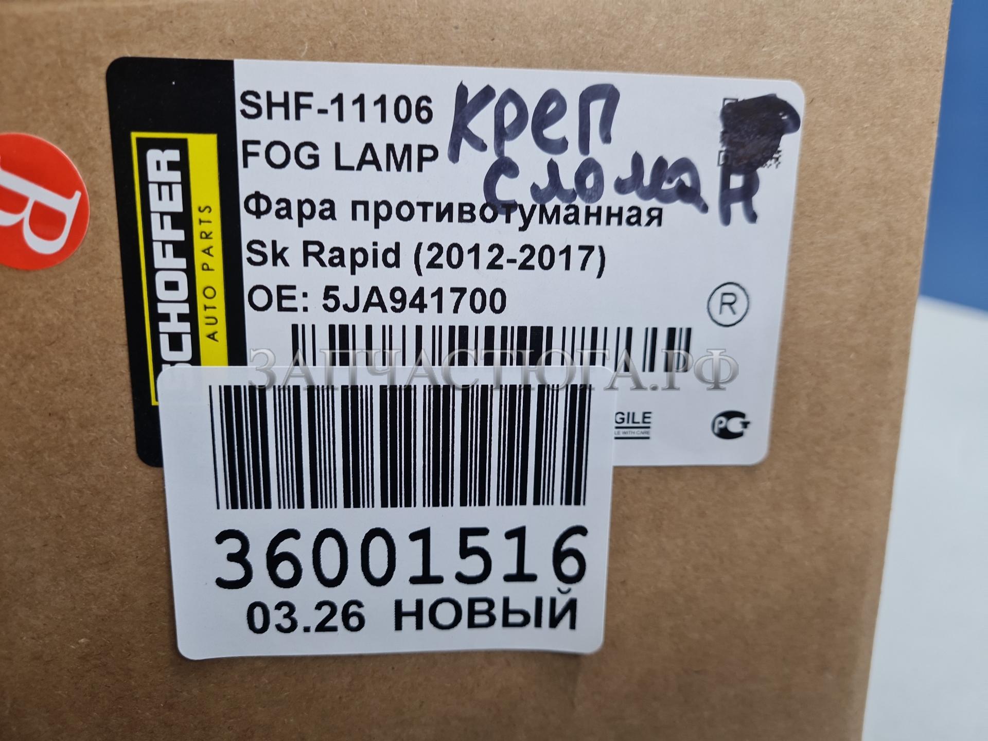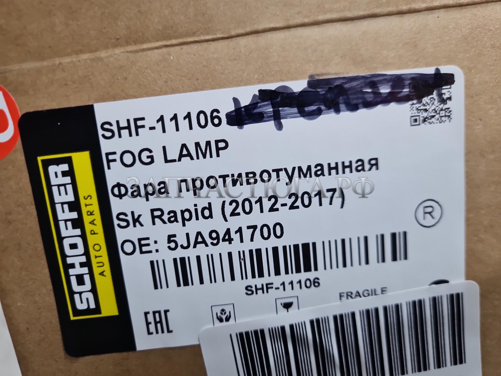 Фара противотуманная правая Skoda Rapid 2013-