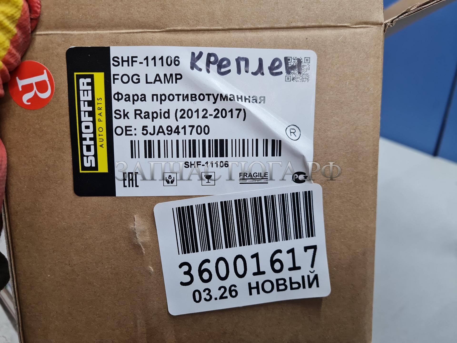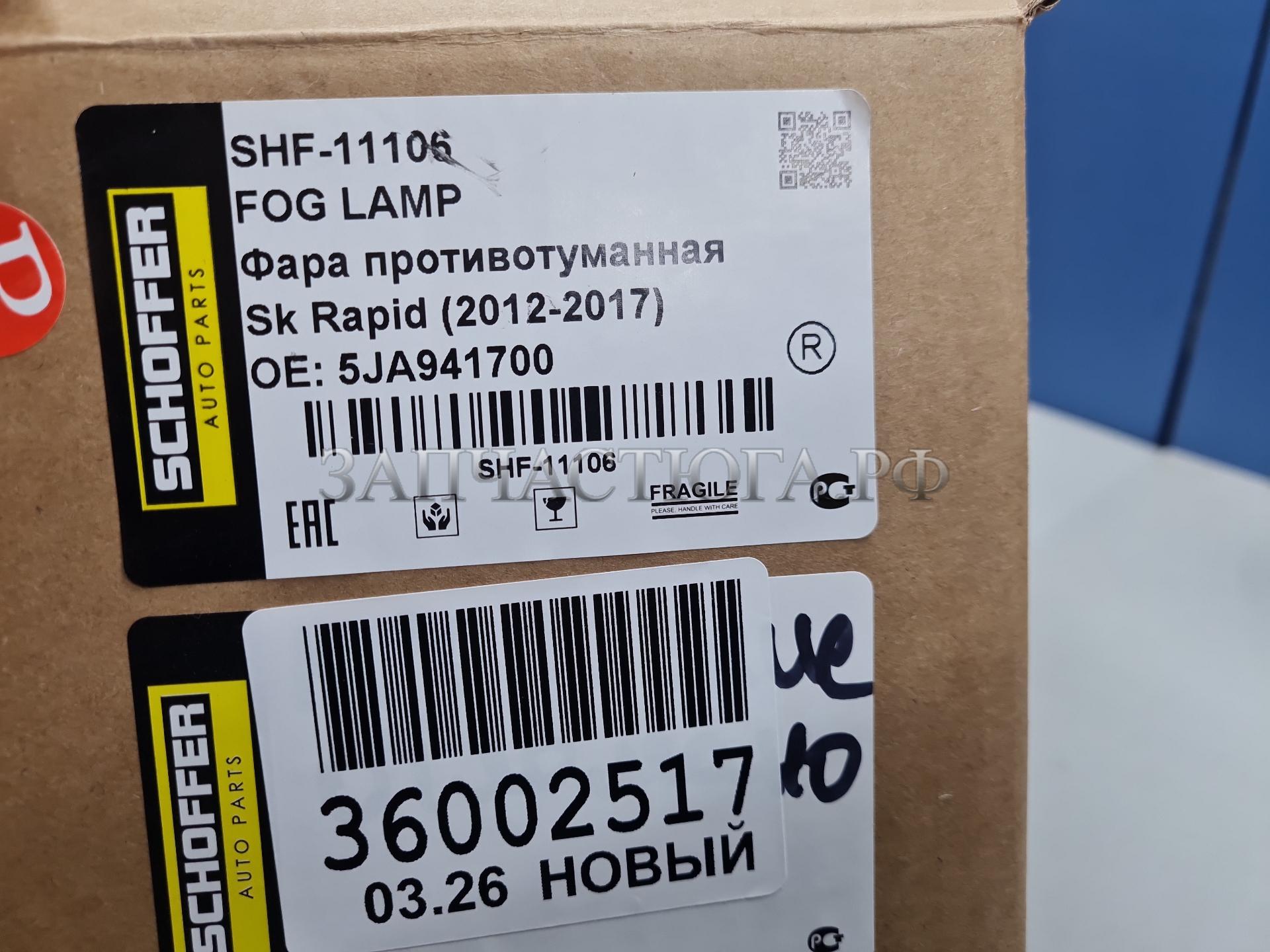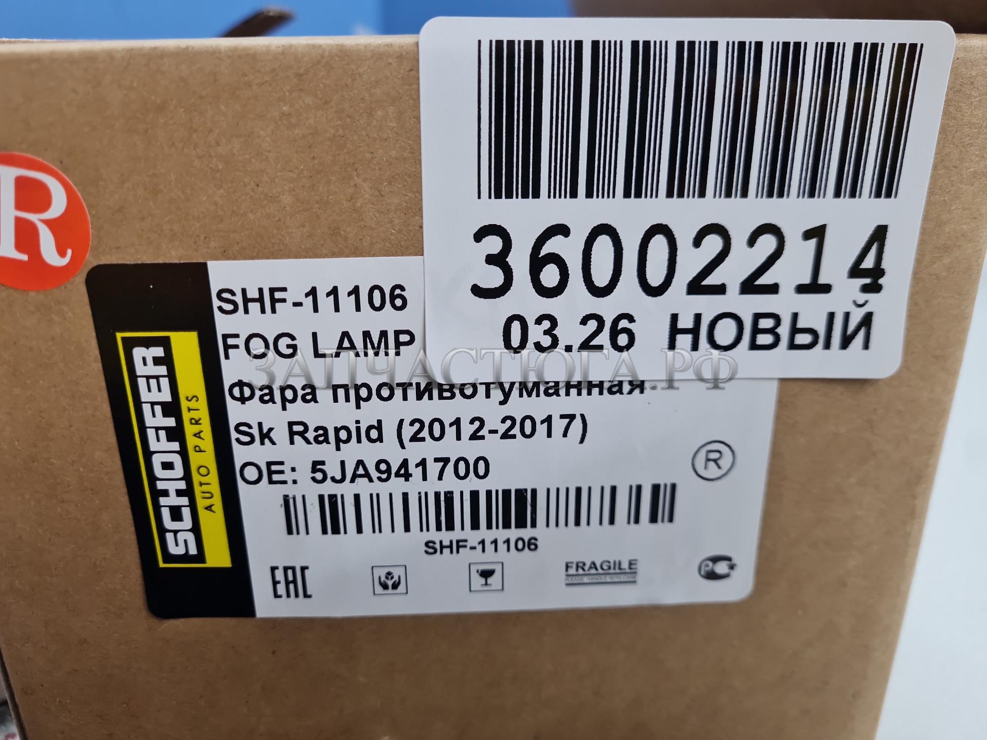 Фара противотуманная правая Skoda Rapid 2013-