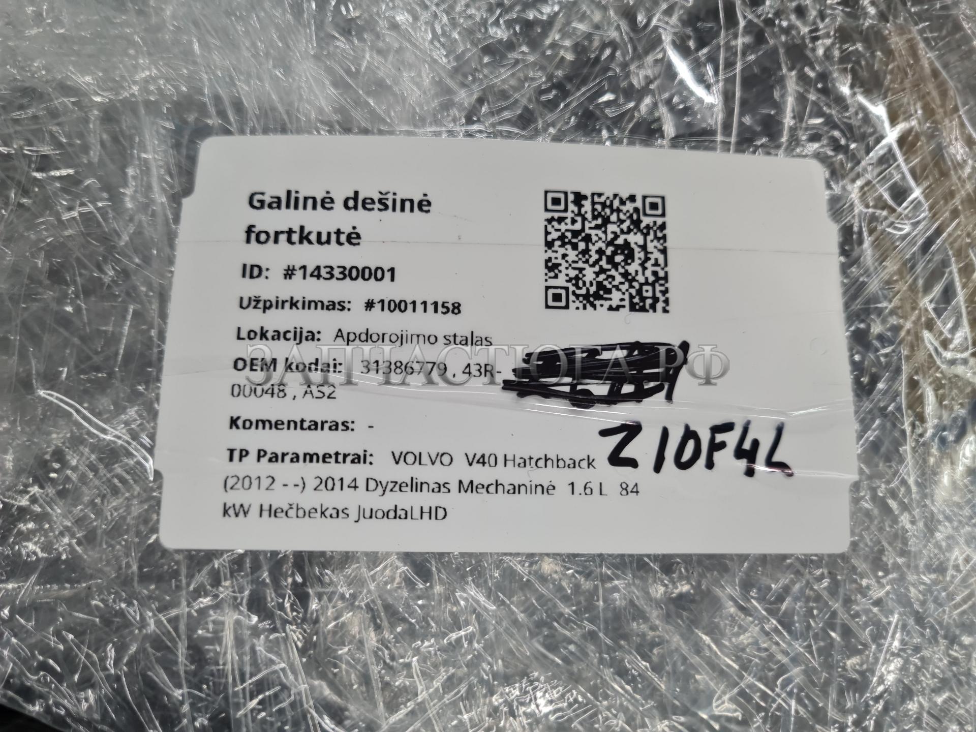 Стекло кузовное заднее правое глухое Volvo V40 (V40 Cross Country) 2012-